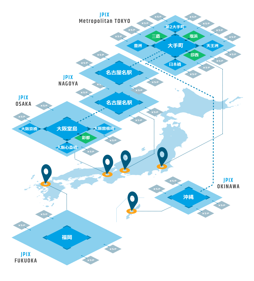 【首都圏 - 名古屋】 JPIX大手町を中心とした構成です。