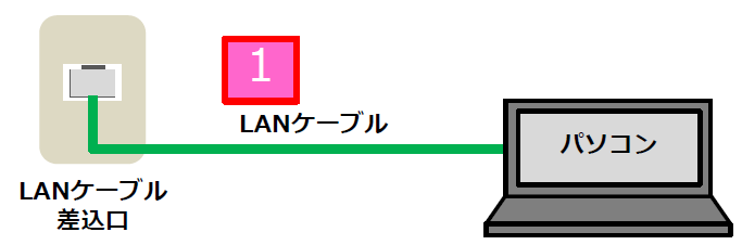 1. LANケーブル差込口とパソコンの「LANポート」をLANケーブルで接続します。